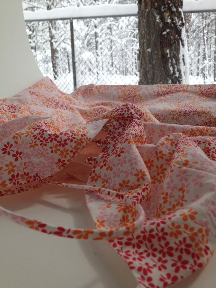 What am I making with these tubes anyway? A sundress!  I took this picture on Sunday during our giant spring snowstorm, which is now melting like crazy.  Whatever the weather says, it’s time for spring/summer sewing!  I used the fabric tubes for the straps, and also button loops at the top.  I’m glad to have my new wire turner, I can make some more straps for tops and dresses for the upcoming season.