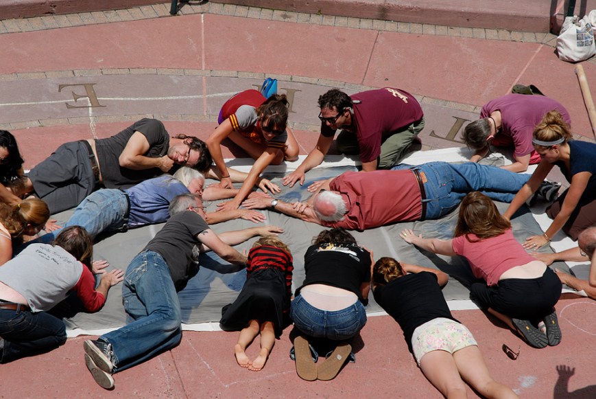 Meanwhile I ran around taking snapshots, and then with the help of a few volunteers, dunked the first panel in successive changes of water to rinse out the unexposed chemistry, while Bryan and the rest of the volunteers exposed the second one.