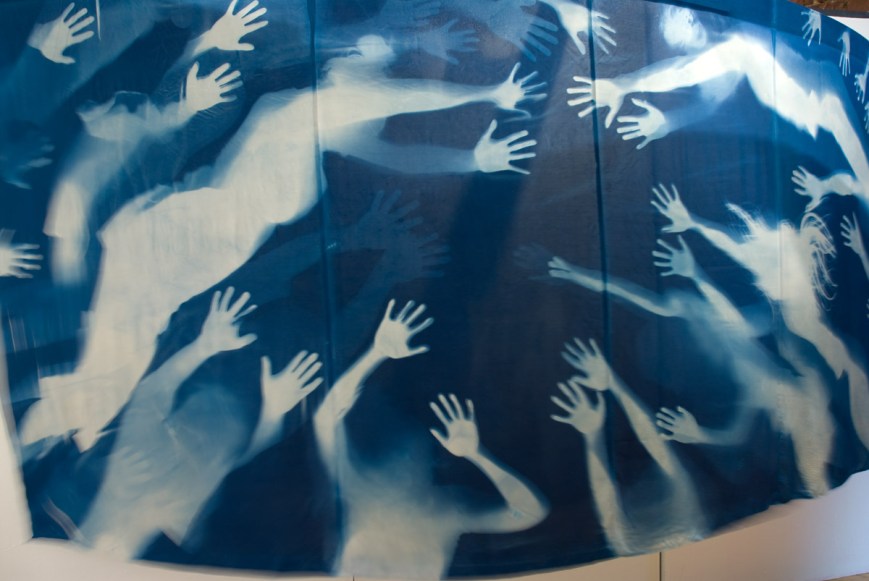 3. This is an awesome project-I would love to do something similar at the summer camp that I work at. Was the equipment, particularly the cyanotype solution expensive due to the size of the fabric?